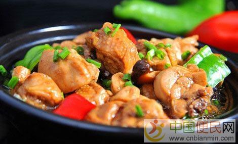 黄焖鸡米饭又叫香鸡煲,浓汁鸡煲饭,是鲁菜名吃。是源自山东省济南市天桥区的汉族传统名吃,属于鲁菜系来自www.cnbianmin.com。始于济南名店"吉玲园"。该小吃做成后色香味美,口感鲜嫩透味不粘腻,香味浓郁。无论口感,视觉,色泽都属上品,令人回味无穷,百吃不厌c+n+b+i+a+n+m+i+n+c+o+m。鸡肉选材鲜嫩三黄鸡鸡腿肉,做出的黄焖鸡嫩滑多汁,汁味和香味浸入鸡肉内部,色泽均匀。用土制砂锅烧制,砂锅内沸腾,香气直入鼻中,鸡块滚烫,色度与亮度呈现最佳状态。